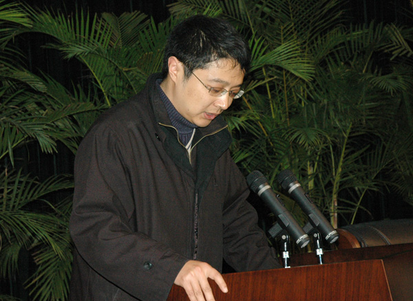 獲得學校2006年度“優秀科研工作者”的劉紅林博士和獲得學校2006年“教師教學優秀獎”的林敏教授在會上做了交流發言。