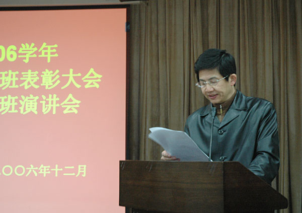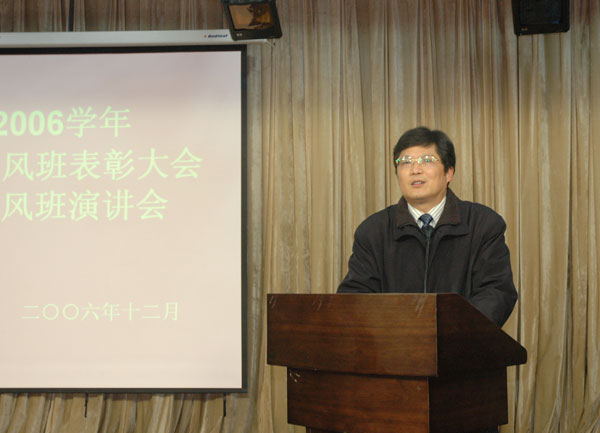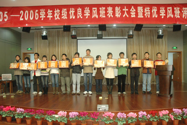 為了切實加強我校的學(xué)風(fēng)建設(shè),營造朝氣蓬勃、團結(jié)奮進、奮發(fā)好學(xué)的學(xué)習(xí)氛圍,12月26日18:00,我校在方圓南樓五樓多功能廳舉行了2005-2006學(xué)年校級優(yōu)良學(xué)風(fēng)班表彰大會暨特優(yōu)學(xué)風(fēng)班評比演講會。校黨委副書記徐涌金、副校長侯宇出席大會。校學(xué)風(fēng)建設(shè)領(lǐng)導(dǎo)小組成員,各二級學(xué)院分管學(xué)生工作的黨總支書記、輔導(dǎo)員及班級學(xué)生代表參加了會議。大會由學(xué)生處處長范慶瑜主持。   會上,徐涌金副書記首先代表學(xué)校學(xué)風(fēng)建設(shè)工作領(lǐng)導(dǎo)小組,對校級優(yōu)良學(xué)風(fēng)班的班級表示祝賀,對所有積極投身于優(yōu)良學(xué)風(fēng)班和特優(yōu)學(xué)風(fēng)班創(chuàng)建活動的師生表示感謝。他指出,本次會議的主要目的是通過優(yōu)良學(xué)風(fēng)班表彰和特優(yōu)學(xué)風(fēng)班評選活動,展示優(yōu)良學(xué)風(fēng)建設(shè)成果,交流優(yōu)良學(xué)風(fēng)建設(shè)經(jīng)驗,濃厚優(yōu)良學(xué)風(fēng)建設(shè)氛圍,激發(fā)廣大同學(xué)積極投身于優(yōu)良學(xué)風(fēng)建設(shè)的熱情,努力促進我校學(xué)風(fēng)建設(shè)步入良性循環(huán)。   徐涌金說,優(yōu)良的學(xué)風(fēng)是一種無形而巨大的精神力量,它既是一種影響力,又是一種推動力,還是一種約束力。學(xué)風(fēng)建設(shè)是涉及全校上下方方面面的系統(tǒng)工程,是校風(fēng)建設(shè)的核心和靈魂,是學(xué)校建設(shè)永恒的主題,需要全校上下共同不懈努力。學(xué)生和教師都是學(xué)風(fēng)建設(shè)的主體,“勵志篤學(xué)”的學(xué)生與“博學(xué)善教”的教師在學(xué)風(fēng)建設(shè)過程中是相互促進、相輔相成的。廣大同學(xué)既是優(yōu)良學(xué)風(fēng)建設(shè)的直接實踐者,更是優(yōu)良學(xué)風(fēng)建設(shè)的最大受益者。只有廣泛發(fā)動同學(xué)高度重視優(yōu)良學(xué)風(fēng)建設(shè)、主動參與優(yōu)良學(xué)風(fēng)建設(shè),才有可能有效促進學(xué)風(fēng)建設(shè)步入良性循環(huán)。優(yōu)良學(xué)風(fēng)班和特優(yōu)學(xué)風(fēng)班創(chuàng)建活動,是促進優(yōu)良學(xué)風(fēng)建設(shè)的有效載體。近年來,我校堅持“計量立校、標(biāo)準(zhǔn)立人、質(zhì)量立業(yè)”的辦學(xué)理念,秉承“精思國計、細(xì)量民生”的校訓(xùn),弘揚“嚴(yán)格嚴(yán)謹(jǐn)、求實求新”的校風(fēng),濃厚“尚德樂業(yè)、博學(xué)善教”的教風(fēng),高度重視優(yōu)良學(xué)風(fēng)建設(shè),切實加強優(yōu)良學(xué)風(fēng)建設(shè),努力形成以“勵志篤學(xué)、求真誠行”為基本內(nèi)涵的優(yōu)良學(xué)風(fēng),為培養(yǎng)“具有牢固的質(zhì)量觀念、明確的標(biāo)準(zhǔn)意識、較強的計量能力,適應(yīng)國家質(zhì)量振興事業(yè)需要”的高素質(zhì)人才提供了有力的校園文化支撐,得到了教育部本科教學(xué)工作水平評估專家組的充分肯定。希望全校同學(xué)們都能積極行動起來,以更加飽滿的熱情投身于優(yōu)良學(xué)風(fēng)班和特優(yōu)學(xué)風(fēng)班創(chuàng)建活動,為促進我校學(xué)風(fēng)建設(shè)步入良性循環(huán)做出新的、更大的貢獻。   會上,侯宇副校長宣讀了榮獲2005-2006學(xué)年校級優(yōu)良學(xué)風(fēng)班的班級名單。徐涌金副書記、侯宇副校長為獲獎的25個班級頒獎。   在接下來舉行的特優(yōu)學(xué)風(fēng)班評比演講會中,參評的25個班級通過幻燈片向在場的老師和同學(xué)展示了一個個勵志進取、團結(jié)向上的班級。這些班級不僅在學(xué)校的日常教學(xué)過程中取得了驕人的成績,而且在各項學(xué)科競賽、課外科技活動、社會實踐活動等方面也表現(xiàn)突出,為全校班級做出了表率。   演講結(jié)束后,各班級的學(xué)生代表根據(jù)現(xiàn)場的演講情況對特優(yōu)學(xué)風(fēng)班進行了投票,評選結(jié)果將近期公布。
