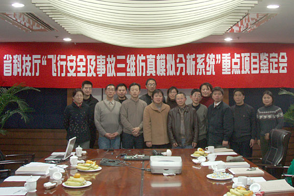 鑒定會(huì)上,專家們?cè)诼犎×隧?xiàng)目組的研究總結(jié)報(bào)告、技術(shù)報(bào)告、檢測(cè)報(bào)告、查新報(bào)告和用戶報(bào)告,審查了有關(guān)資料后,一致同意該項(xiàng)目通過省級(jí)鑒定。專家們認(rèn)為該項(xiàng)目在飛行安全及事故三維仿真模擬技術(shù)方面處于國內(nèi)領(lǐng)先水平,建議進(jìn)一步完善系統(tǒng)功能,做好市場(chǎng)推廣和應(yīng)用工作。