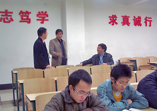 課堂是教學工作的前線,直接反映本科教學質量。11月27日上午8:00分至8:45分,評估組專家們紛紛走進學生課堂聽課,全面考察教學情況,聽取了復變函數、磁性材料、機電一體化系統設計、電磁場理論與微波技術、信號與系統(A)、毛澤東思想概論、客戶關系管理等七門課程。   我校各教學單位對專家來到我校進行評估,并走進學生課堂聽課,直接了解和真實感受我校本科教學第一手情況,都十分重視,作了認真的準備。還未上課,所有的學生都自覺地在教室里作課前準備。當專家來到教室時,學生們不約而同地鼓掌歡迎。   在整個聽課過程中,專家們不僅認真聽取老師授課,還利用課間時間與教師、學生進行交流,詢問教師教學日歷,詢問學生學習情況,深入、全面地了解了我校的教學情況。課堂上,授課教師教學方法新穎,教學手段先進,注重與學生互動交流,課堂教學氣氛活躍,展現了我校師生的良好風貌。   評估專家組組長易佑民教授在環宇樓A302教室聽了理學院丁春梅老師的《復變函數》課。丁春梅老師在授課中注重與學生交流互動,課堂氣氛良好。在教室里,易佑民教授與學生進行了親切交談,翻閱了教材,詢問了學生的學習情況。課后,易教授與丁春梅老師親切交流,對丁老師的教學水平和技能給予了很高的評價,指出她對教學內容的關鍵點和重點把握到位,講解清晰。   評估專家組副組長張新義教授在環宇樓C304教室聽了機電工程學院陳紅巖老師講授的《機電一體化系統設計》課。陳紅巖老師利用多媒體講授了“相撲機器人”設計制作的原理和要點,課堂上師生互動,氣氛融洽。課后,張新義教授還與陳紅巖老師親切交談,陳紅巖老師向他介紹了我校學生參加機械設計競賽的情況,張教授對我校學生在這方面取得的突出成績表示肯定。   評估專家韓焱教授來到環宇樓C603聽取信息工程學院葉強老師的《電磁場理論與微波技術》課程,受到了教師和同學們的熱烈歡迎。韓教授認真地聽取了講課,對部分重點做了仔細的記錄,并在課后與葉老師做了簡單的交流。   評估專家楊景海教授來到格致中樓603教室聽課。上課教師劉亞丕博士和2003級應用物理1班的學生早早來到教室,體現了我校良好的教風學風。劉老師和全體學生對評估專家組成員楊景海教授的到來表示了熱烈的歡迎。劉老師還將上課教材交與楊景海教授,請他給予指導。   評估專家蔡衛教授到達翔宇樓205教室,先與人文社科學院《毛澤東思想概論》授課教師薛兆瑞老師進行了課前交流,隨后聽了課。   評估專家孫國輝教授在翔宇樓105教師認真聽取了管理學院曾宇蓉老師講授的《客戶關系管理》課,并在課前就教材、考試形式等問題與曾宇容老師進行了親切的交談。   評估專家高益慶教授來到賽博北樓B103聽課。高教授與授課老師金寧親切握手,并認真聽取了一堂《信號與系統》課程。課間,高教授向金寧老師簡單地了解了所聽課程和專業建設的相關情況。