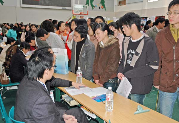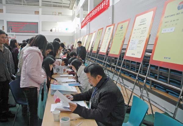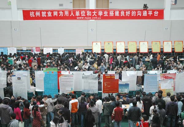 12月3日,杭州市“2007高校畢業(yè)生招聘校園行”首場招聘會(huì)在我校體育館隆重舉行。本次招聘會(huì)組織了110余家用人單位前來招賢納才,共提供2532個(gè)就業(yè)崗位,吸引了近3萬名高校畢業(yè)生排隊(duì)進(jìn)入招聘現(xiàn)場求職。   此次校園招聘會(huì)提供的職位中,以計(jì)算機(jī)、機(jī)械、電子、醫(yī)藥、紡織、營銷類崗位居多,占到50%左右。其中,東方通信、富通集團(tuán)、東部軟件園、頤高數(shù)碼、創(chuàng)佳軟件等IT企業(yè)就帶來了軟件開發(fā)、系統(tǒng)管理、網(wǎng)絡(luò)管理、軟件測試等多個(gè)崗位。   在招聘會(huì)現(xiàn)場,肯德基、聯(lián)華華商超市、好又多百貨、黃龍飯店、清水灣假日酒店等商場、賓館、餐飲服務(wù)及中小企業(yè)也進(jìn)入了招聘大軍行列,他們希望通過校園招聘的方式,招募和儲(chǔ)備各種各樣的學(xué)不同專業(yè)的人才。   招聘會(huì)期間,部分單位還召開了小型畢業(yè)生見面會(huì),企業(yè)形象、企業(yè)文化專場宣講會(huì)。杭州永裕貿(mào)易有限公司就在當(dāng)天下午舉辦了交流酒會(huì),讓應(yīng)聘者更能直觀的了解企業(yè)文化,融入到企業(yè)中來。   據(jù)統(tǒng)計(jì),招聘現(xiàn)場共有7000余人次與用人單位初步達(dá)成就業(yè)意向。