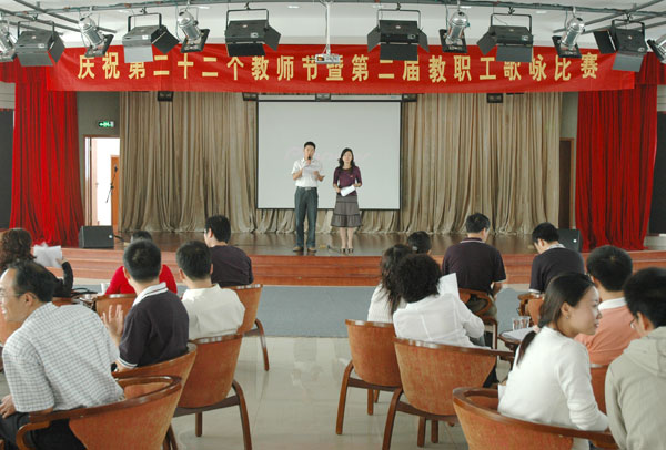 10月13日下午,由我校工會主辦第二屆教職工歌詠比賽在多功能廳隆重舉行。林建忠校長親自擔任此次比賽的評委,校黨委副書記于永明、副校長張碩年到場觀看了本次大賽。   比賽在喜慶愉悅的氛圍中進行,共有28位選手參加比賽。每位選手都是經過精心準備、熱情高漲,懷著對我校未來的美好希望和信心,他們動情地演唱著一首首歌曲,將大賽的氣氛一次次推向高潮。選手們聲情并茂的演唱,熱情洋溢的笑容,贏得了臺下雷鳴般的掌聲。   賽后,林建忠校長也即興演唱了一首《北國之春》,給在場觀眾留下了深刻的印象。   經過評委認真評判,評選出一等獎三名,二等獎六名,三等獎九名。人文社科學院李江、圖書館開紅、馬軍榮獲一等獎。管理學院、圖書館榮獲優秀組織獎。