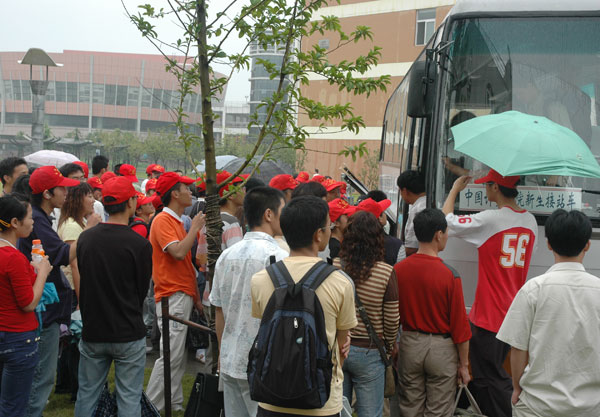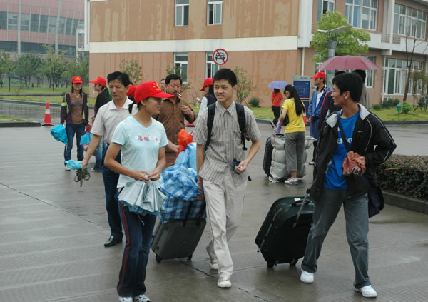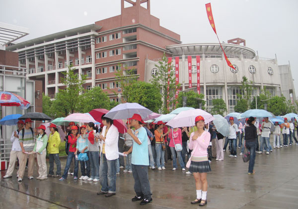 9月9日,校園內人聲鼎沸、彩旗飄揚,今天是學校2006級新生報到的第一天。微涼的秋雨將夏季的炎熱一掃而光,卻絲毫也沒有減退學校迎接新生的熱情。   一早,來自全國28個省、市、自治區的新生們在家長的陪同下陸陸續續來到學校。一到校門口,拱門上“熱烈歡迎2006級新同學”的標語一下子就映入了他們的眼簾。進入校園內,“喜迎八方精英才俊,培養未來社會棟梁”、“智慧在這里升華、思想在這里陶冶”等宣傳橫幅和豎幅分別高高地懸掛在各幢教學樓上。校園櫥窗前,由黨委宣傳部制作的30塊弘揚“標準立人、計量立校、質量立業”精神的展板向新生和家長們全面介紹和展示了學校的歷史和辦學成就。新生和家長們紛紛駐足觀看,不時發出聲聲贊嘆。一位新生家長在瀏覽了展板的內容后欣喜地說道:“學校盡管辦學時間不長,卻取得了如此輝煌的辦學成就,把孩子送來這里,我們放心了!”   環宇樓大廳里,熱鬧非凡,隨處可見簡潔明了的示意圖和引導牌,還有那些流動著的可愛的“小紅帽”。新生報到入學的各項手續都在這里有序的辦理著。學校工作人員的耐心講解,志愿者們熱情周到的服務以及方便快捷的辦理手續,贏得了新生和家長們的交口稱贊。   校黨委書記姚盛德、校長林建忠、黨委副書記徐涌金等學校黨政領導深入迎新現場,親自指導迎新工作,對在迎新工作第一線的工作人員進行慰問,并與新生及家長進行了溝通和交流。   學工部、團委、計財處、保衛處、后勤服務公司等相關部門和各二級學院的工作人員都放棄了周末休息,一大早就已經做好各項準備工作,守候在各自的崗位等待新同學的到來。有關部門和各二級學院的負責人也都親臨迎新現場進行指揮。盡管報到的高峰接連不斷,但由于各項工作準備充分,各部門密切配合,使得迎新工作始終有條不紊。   據悉,為了讓新生順利入學,盡快熟悉和適應大學生活,校團委和學生處還為新生們編寫了《中國計量學院2006新生寶典》,作為新生報道的第一份溫馨的禮物,發送到他們手中。   以下是本站記者從迎新現場發回的圖片報道。