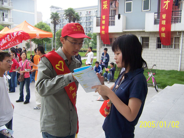 9月9日—10日,在迎接2006年新生的工作中,常常可以看到鮮紅的黨徽,處處都有學生黨員的身影。   在新生居住的1#、9#、11#學生公寓里,身批綬帶的黨員志愿者笑臉相迎,為新生一起搬抬行李、為家長咨詢指路、為新到來的學弟學妹答疑解惑,還協助宿舍管理員維護報到現場秩序,勸阻不文明行為等等。親切的笑容、熱情的服務,讓新生和家長切實感受到了量院學生黨員的風采。   這是由校“黨員之家”招募的學生黨員志愿者第一次為師生提供志愿服務。這一支近40人的黨員志愿者隊伍的招募,為學生黨員以實際行動為廣大師生提供服務搭建了一個平臺,通過志愿服務的形式開展黨員先進性教育實踐活動,讓學生黨員和入黨積極分子能夠在學校重大活動中發揮自身的作用。為了讓這些學生黨員、入黨積極分子盡快進入角色,9月8日晚,黨委組織部王勤老師還在校“黨員之家”專門組織了培訓,對黨員志愿者提出了三點要求:一要文明服務,樹立良好的學生黨員形象;二要熱情周到,維護學校的良好聲譽;三要甘于奉獻,發揮先鋒模范作用。今后,這些黨員志愿者仍將不定期在校園里開展志愿服務工作。   除了在迎新志愿者的隊伍里,在各二級學院辦理新生報到手續的攤位前也處處可以看到鮮紅的黨徽。機電工程學院的新生接待點前,“有困難找黨員”的橫幅鮮紅奪目,臺前坐著整整齊齊一排胸佩黨徽的學生黨員,辦報到、發材料、解答疑問,這些學生黨員都做得有條有理。在信息工程學院、人文社科學院、管理學院等各二級學院的接待點上也都活躍著學生黨員的身影。在今年的迎新工作中,學生黨員協助老師辦理報到,為新生解答了不少疑難問題,受到了新生及其家長的好評。   迎新工作中學生黨員的突出表現,為我校學生黨員更好地發揮先鋒模范作用,探索保持黨員先進性教育的長效機制開創了一個良好的開端。近期,我校將在全校范圍內落實開展黨員先進性教育實踐活動和創建先進黨支部活動,相信會有越來越多的黨徽閃耀在我們的身邊。