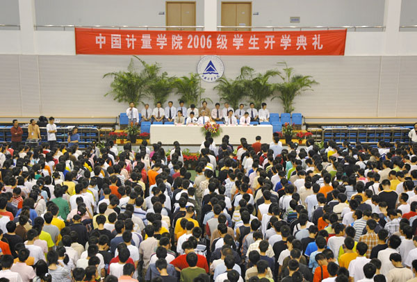 懷著暢求新知的志向和對(duì)美好未來(lái)的憧憬,又一批朝氣蓬勃的年輕學(xué)子跨入了中國(guó)計(jì)量學(xué)院的大門(mén)。9月15日,學(xué)校舉行了隆重的2006級(jí)學(xué)生開(kāi)學(xué)典禮。姚盛德、林建忠、徐涌金、張碩年、侯宇等學(xué)校領(lǐng)導(dǎo)參加了大會(huì)。大會(huì)由黨委副書(shū)記徐涌金主持。   林建忠校長(zhǎng)在開(kāi)學(xué)典禮上致辭。他代表學(xué)校向全體新生表示衷心的祝賀和熱烈的歡迎!他指出,中國(guó)計(jì)量學(xué)院是我國(guó)質(zhì)量監(jiān)督檢驗(yàn)檢疫系統(tǒng)唯一的一所本科院校,它代表著我國(guó)這個(gè)系統(tǒng)的最高教育水平。沒(méi)有計(jì)量,不知方圓。從廣義上理解,方圓即計(jì)量,是指測(cè)量知識(shí)的整個(gè)領(lǐng)域,它涉及到國(guó)民經(jīng)濟(jì)和人民生活的方方面面,是一項(xiàng)重要的技術(shù)基礎(chǔ),而以計(jì)量建校的中國(guó)計(jì)量學(xué)院現(xiàn)在已經(jīng)發(fā)展成一所涵蓋八個(gè)學(xué)科門(mén)類(lèi)38個(gè)本科專(zhuān)業(yè),14個(gè)碩士點(diǎn)的多科性大學(xué)。   林建忠校長(zhǎng)對(duì)新生們今后在學(xué)校的學(xué)習(xí)和發(fā)展提出了幾點(diǎn)要求。第一,要勤于思考,不辱使命。大學(xué)生應(yīng)當(dāng)是思想者,在思考的基礎(chǔ)上,將為國(guó)為民的情懷物化為報(bào)效祖國(guó)、服務(wù)人民的事業(yè)心、責(zé)任心和使命感。第二,要敢于探索,格物致知。大學(xué)生應(yīng)該是探索者,要博學(xué)、審問(wèn)、慎思、明辨、篤行,在學(xué)習(xí)和探索的過(guò)程中不斷豐富自己。第三,要善于轉(zhuǎn)變,順勢(shì)而戰(zhàn)。盡快把自己的心態(tài)轉(zhuǎn)變到大學(xué)生活中,變被動(dòng)學(xué)習(xí)為主動(dòng)學(xué)習(xí),形成自己獨(dú)特的知識(shí)結(jié)構(gòu)和多樣的思維方式,提升自己的實(shí)踐能力和創(chuàng)新能力。第四,要勇于實(shí)踐,不斷向前。在大學(xué)的學(xué)習(xí)生活中培養(yǎng)高尚的情趣,鍛煉強(qiáng)健的體魄,培育溫馨的師生情誼,形成樂(lè)觀向上的人生態(tài)度。林建忠校長(zhǎng)寄語(yǔ)新生,殷切希望美麗的西湖能夠熏陶出大家靈秀、淡雅、脫俗的心境,使一生過(guò)得從容;而洶涌的錢(qián)塘江水能夠激蕩出大家的激情和斗志,使一生過(guò)得充實(shí)。   開(kāi)學(xué)典禮上,學(xué)校領(lǐng)導(dǎo)親自為新生代表們佩戴了中國(guó)計(jì)量學(xué)院校徽。   各二級(jí)學(xué)院的院長(zhǎng)或黨總支書(shū)記分別在大會(huì)作了熱情洋溢的講話(huà)。校友代表、中國(guó)計(jì)量學(xué)院1990屆即首屆本科畢業(yè)生、浙江省標(biāo)準(zhǔn)化研究院副院長(zhǎng)趙志強(qiáng)先生在大會(huì)發(fā)言。新生代表計(jì)量技術(shù)工工程學(xué)院鄧敬捷在會(huì)上發(fā)言,信息工程學(xué)院陳金帶領(lǐng)全體新生在開(kāi)學(xué)典禮上作了莊嚴(yán)的入學(xué)宣誓。   開(kāi)學(xué)典禮結(jié)束后,學(xué)校在日月湖畔燃放了煙花。絢爛的煙火象征著量院美好的明天。