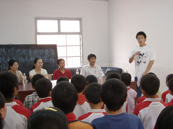 在陽光小學專門舉行的簽約儀式上,校團委副書記王勤與陽光小學的籌建人岑偉東董事長一起簽定了共建協議。王勤老師代表團委對陽光小學的領導和師生表示感謝,同時也對參加支教服務的青年志愿者提出了三點要求,要求志愿者們珍惜實踐機會,圓滿完成支教任務,利用課余的時間自學一些教育學、心理學的相關知識,校青年志愿者總隊要在精心選拔志愿者的同時為他們安排一些相關的講座、培訓,通過每一名志愿者認認真真準備每一次教學方案,踏踏實實開展每一次支教活動,確保支教任務的圓滿完成。要求志愿者們持之以恒,堅持不懈,通過一批又一批志愿者的愛心接力,把這項支教的服務堅持下來。要求志愿者們發揚我校青年志愿者總隊的光榮傳統,在實踐中展現量院學子的風采。 我校青年志愿者總隊是一支光榮的志愿服務隊伍,曾經囊括了省、市各類志愿者活動的獎項,在以往的志愿服務活動中,表現出嚴守經律、無私奉獻的良好作風。希望在陽光小學這個實踐基地的服務全過程中,我們的每一名志愿者能夠發揚總隊的這些光榮傳統,把這個實踐基地也建設成為符合省優標準的服務基地。
