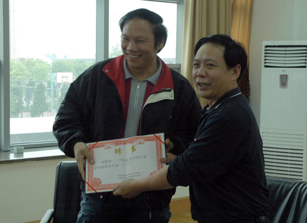 5月16日,體軍部會議室里熱鬧非凡,中國計量學院排球俱樂部暨量院女子排球隊的成立儀式在這里舉行。隨著我校體育運動水平的發(fā)展,學校已經擁有了各個運動專項隊,并在各種比賽中取得了很好的成績,逐漸形成了量院運動隊的特點和風格。   下午四點整,成立儀式準時開始,出席儀式的專家和領導有:中國大學生排球協(xié)會顧問、浙江省大學生排協(xié)名譽主席李趙來教授,中國大學生排球協(xié)會副主任、浙江省大體協(xié)常務副主席姜建華教授,中國大學生排球協(xié)會常務理事、浙江省大學生排協(xié)秘書長、浙江省排球協(xié)會裁判委員會副主任李寧教授,中國大學生排球協(xié)會常務理事、浙江省大學生排協(xié)教訓訓練委員會主任、浙江大學高水平排球隊主教練姚紅芬教授,浙江省排球協(xié)會裁判委員會主任、國際級裁判駱文笙等。   我校體軍部主任季建成教授首先在成立儀式上致辭。他代表中國計量學院和體軍部對各位專家的到來表示熱烈的歡迎。他說,本次俱樂部暨女排隊的成立能夠邀請各位專家的到來,這在學校俱樂部和專項運動隊的建設上還是首次。季建成教授表達了作為一名排球運動愛好者對排球的熱愛,并闡述了“排球精神”,希望俱樂部能為學校的群體工作做出貢獻。   李趙來教授和姜建華教授分別在會上致辭。他們從自身的角度談起,表達了對量院排球俱樂部暨量院女排成立的祝賀,并對量院排球俱樂部和女排的發(fā)展提出了希望和要求。 信息工程學院黨總支書記付洪建在會上發(fā)言,從三個方面說明了從事排球運動的意義。   俱樂部成員代表屠盈盈在會上發(fā)言,表達了一名普通學生對于排球的熱愛和希望提高排球技術水平的迫切期望。同時,作為俱樂部的首任秘書長,屠盈盈還對今后排球俱樂部的具體工作做了相應的介紹。   隨后,俱樂部聘請付洪建書記擔任中國計量學院排球俱樂部的名譽主席,聘請李趙來教授擔任中國計量學院排球俱樂部的顧問。季主任代表體軍部和俱樂部為兩位專家頒發(fā)了聘書。   會議還對在中國計量學院第三屆運動會排球比賽裁判工作中表現(xiàn)突出的四位優(yōu)秀裁判和量院體育運動委員會進行了表彰,并由李趙來教授、姜建華教授、李寧教授和付洪建書記為他們頒發(fā)了榮譽證書。   最后,與會的各位專家、體軍部的各位老師以及俱樂部和校女排的全體隊員合影留念,并將各自的名字簽在一只嶄新的排球上,作為一份珍貴的歷史紀念留存在體軍部。