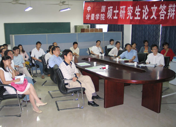 根據2003級碩士研究生教學計劃安排,并與中國計量科學研究院協商,我校于2006年5月26日分別在計測學院、機電學院和理學院組織了2003級碩士研究生學位論文答辯工作,共有12名碩士研究生參加了答辯。   中國計量科學研究院人事處處長田和平等專程從北京來我校指導碩士研究生學位論文答辯工作。學校黨委副書記徐涌金、副校長蔣家新與田和平處長進行了座談。校領導田和平處長一行來我校指導研究生工作表示感謝。雙方就下一步繼續加強科研項目合作,鼓勵我校具有博士學位的青年教師到中國計量科學研究院進行中短期研修,組織青年教師暑假到中國計量科學研究院進行學術訪問和交流,拓寬我校研究生培養模式、利用中國計量科學研究院科研項目培養研究生等進行了深入的交談,并達成初步意向。   2003級12名研究生均為中國計量科學研究院招收、我校全程獨立培養。自2003年9月份入校學習以來,經過近三年的課程學習、科研訓練、撰寫學位論文等工作,順利完成了碩士研究生教育,均已達到碩士學位論文答辯的要求。   學位論文答辯工作直接關系到我校研究生的培養水平和質量,研究生部對本次學位論文答辯工作十分重視,多次召開會議,通報中國計量科學研究院有關學位論文答辯的各種要求,強調研究生學位論文答辯的水平將直接反映我校的研究生培養質量,要求學科、導師和研究生認真做好各項準備工作,為順利完成學位論文答辯工作打下了扎實基礎。   答辯會場上,醒目的橫幅營造了隆重熱烈的氣氛。答辯過程中,委員們嚴格按照碩士研究生學位論文答辯的有關程序,“高標準、嚴要求”,對學位論文進行了認真、嚴肅的評審;申請人精心準備,認真回答了委員們的提問,整個答辯會場始終充溢著濃厚的學術氛圍。經過答辯委員會的嚴格評審,12名申請人均通過了論文答辯。   學校有關部門負責人陪同田和平處長等對03級研究生學位論文答辯工作進行了巡視。田和平處長對我校認真組織本次學位論文答辯工作給予了充分的肯定,他指出雙方在研究生教育方面已開展了多年合作,也培養出了大量的優秀畢業生,希望雙方繼續加強交流與合作,以求共同發展。