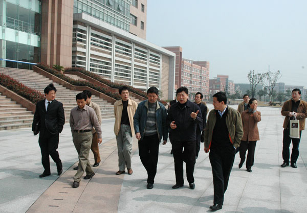 3月10日上午,陜西省政府代表團一行十余人在浙江省政府辦公廳文教處處長潘捷軍,下沙園區辦主任、省教育廳宣教處副處長薛曉飛等的陪同下來我校參觀考察。來訪的代表團成員包括:陜西省政府副秘書長薛漢軍,以及陜西省政府辦公廳、財政廳、國土資源廳、教育廳、建設廳、財政廳等相關部門的負責人。   校長林建忠,副校長張碩年,黨委委員、黨校辦主任陶偉華以及我校計財處、基建處等相關職能部門負責人陪同代表團參觀了校園,并就我校整體發展情況,和在新校區建設過程中的資金使用情況向客人作了介紹。