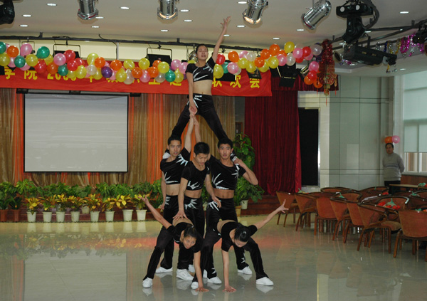 12月30日下午,我校教職工之家多功能廳張燈結彩、喜氣洋洋,中國計量學院2006年教職工迎新聯歡會隆重舉行。姚盛德、徐涌金、張碩年、呂進等學校領導參加了聯歡會。   副校長張碩年在聯歡會上致新年賀詞,祝愿全校教職工和離退休老同志新春快樂,身體健康。張碩年說,即將過去的2005年,是我校全面貫徹落實校第一次黨代會精神的開局之年,也是學校各項工作穩步推進的收獲之年。在過去的一年里,學校制定了五年發展規劃;新增碩士點10個;成功召開全校科技工作會議,獲得5項國基金,到校科研經費近1800萬元;成功召開全校2005年教學工作會議;招生規模再創新高,達到3900余人;人才培養質量受到社會肯定,畢業生初次簽約率達91.08 %,位居省屬普通非師范本科院校第四名,這些成績的取得是全校師生員工在校黨政的正確領導下,積極開拓,勇于創新,勤奮工作的結果。他指出,2006年是我校繼續貫徹落實校第一次黨代會精神、全面落實學校五年發展規劃的重要一年。2006年,學校將迎接教育部本科教學工作水平評估,抓住機遇,迎接挑戰,推進教育創新,促進教育發展,這是我們必然的選擇,也是我們唯一的選擇。他希望在新的一年里,每一位教職工都能為計量學院書寫新的輝煌詩篇貢獻自己的一份力量!   校工會常務副主席朱金奎在會上宣布了2005年度“三育人”十佳先進個人、優秀工會工作者、工會積極分子的名單。   聯歡會由在2005年浙江省大學生健美操比賽中獲得一等獎的學生代表隊的精彩表演拉開帷幕。整臺聯歡會現場氣氛輕松愉快,古箏、舞蹈、獨唱、京劇等形式多樣的節目中穿插著各種游戲和抽獎活動,一次次將聯歡會的氣氛推向高潮。
