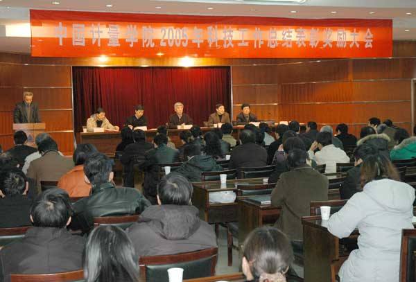 1月18日下午1:30,我校在明德樓B6會議室隆重召開了中國計量學院2005年科技工作總結表彰獎勵大會。姚盛德、方志剛、于永明、徐涌金、張碩年、呂進等學校領導出席了會議。受表彰獎勵人員、校聘1-4級崗人員、各二級學院主要負責人、直屬單位和相關職能部門負責人參加了會議。會議由黨委副書記、常務副校長方志剛主持。   會上,呂進副校長作了2005年科技工作總結報告。他指出,2005年,學校科研工作在校黨政的正確領導下,在全體教職員工的努力下,按照學校發展的總體要求,認真貫徹落實校第一次黨代會精神,圍繞學校科技發展目標,采取有效得力措施,加大管理力度,提升服務水平,科研工作取得了喜人的成績。學校進一步理順了科技政策,營造更為有利的科研氛圍;逐步形成了具有特色的學科群體和科研團隊,基礎科學和高科技前沿的科研原創性增強;以經濟建設為主導,整合資源,構建科技平臺,做好研發和成果轉化服務;人文管理與哲學社會科學的科研工作有了良好起步;科研工作上水平、出效益,在科技創新成果等方面取得了進步;以教學研究型大學為建設目標的兩級科研管理與服務工作初成規模。   他強調,成績的取得是學校廣大教師和科研工作者努力拼搏、艱苦奮斗的結果,是全校各單位、各部門密切配合、共同努力的結果。希望全校教師向獲獎教師學習,努力提升研究能力,促進學風建設,推動我校科技工作再上一個新的臺階。   隨后,大會表彰了“優秀科研工作者”和“優秀科研管理工作者”等一大批2005年在從事科研工作和科研管理工作中業績突出的教師和管理干部,并向他們頒發了證書和獎金。徐時清、何兆泉、曹飛龍等三位獲獎教師代表上臺發言,暢談了各自在科研工作中的心得體會。   會議的最后,黨委書記姚盛德代表黨委向為學校科研發展做出突出貢獻、受到表彰的先進個人表示衷心地祝賀,向默默奉獻的廣大教職員工表示衷心的感謝,向盡心盡職、帶領職能部門、緊緊依靠廣大教師開展科技工作的呂進副校長表示誠摯的謝意。他指出,2006年是學校全面貫徹落實”十一五”發展規劃的開局之年,是學科建設的關鍵之年。他希望全校上下冷靜面對2005年科技工作取得的成績,總結經驗,看到差距,齊心協力,使科研工作更上一層樓,為學校加快建設和發展,為實現學校黨代會提出的向教學研究型大學目標邁進做出應有的貢獻!