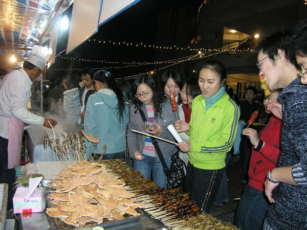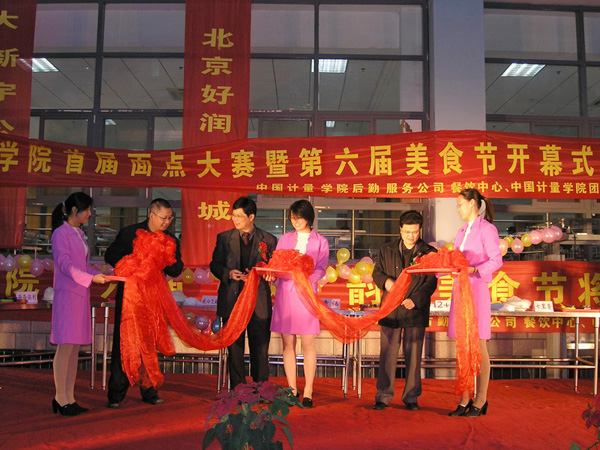 為了提高后勤餐飲特色服務,豐富學生的美食文化,12月2日下午,由中國計量學院后勤服務公司餐飲服務中心主辦、校團委和社區學生委員會膳管會協辦的第六屆“秋之韻”美食節在活潑的音樂和絢爛的煙花中拉開幃幕。本屆美食節的開幕式暨首屆學生面點大賽在新餐廳舉行,校黨委副書記徐涌金,黨委委員、黨校校辦公室主任陶偉華,黨委宣傳部部長畢曉光等出席了開幕式,并為開幕式剪彩。   徐涌金副書記在開幕式上講話,他衷心地希望美食節辦出品味、辦出風格、越辦越成功。開幕式上學校以及后勤服務公司領導為在開學初后勤服務公司、校團委以及社區學生委員會聯合舉辦的“走進餐廳體驗生活”活動中獲獎的學生頒獎。多姿的才藝表演和學生現場面點大賽給本屆美食節的開幕式增添了活力和色彩。   正當新餐廳沉浸在緊張而熱烈的面點大賽中時,牡丹園餐廳門口洋溢著另一番風味――“美食一條街”。羊肉泡饃、紹興臭豆腐、青島鐵板魷魚等傳統美食應有盡有,南洋榴花、酥皮燕窩、香港撒尿牛丸等地方經典風味小吃捷足登場。熱氣濃濃,香味濃濃,初冬的寒風擋不住大家對美食的渴望,同學們成群結伴,品著口中的,聞著手中的,還不停地賞著鍋中的,場面熱鬧非凡。