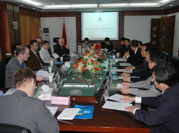 11月4日,德國亞琛工業大學機床和生產技術研究所(WZL)和弗朗霍夫研究院生產技術研究所(IPT)代表團一行10人由省科技廳對外科技合作處處長董克軍等陪同來我校訪問。呂進副校長出席座談會并介紹學校情況。科技處處長陳樂、計量技術工程學院院長李東升、機電工程學院副院長徐向??,機電工程學院李青教授、信息工程學院董前民教授以及國際交流及合作處副處長吳宏寬參加了會議。