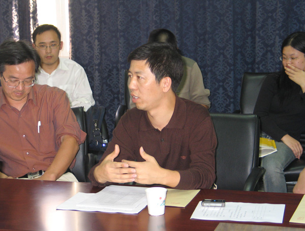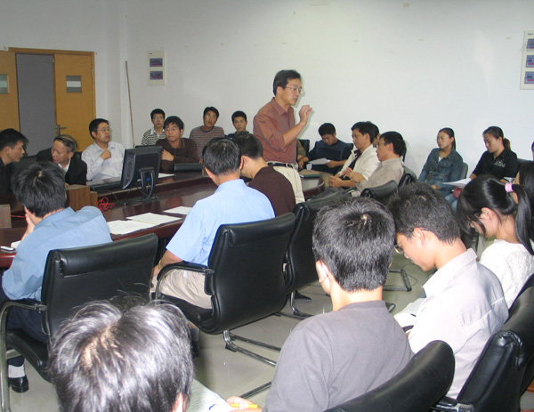 陳彭年首先對學科及導師進行了詳細的介紹,使同學們進一步增加了對學科及導師的了解。隨后,各位指導教師分別介紹個人簡歷、研究方向、學術特色、專長、在研課題、經費及對學生的要求和承諾等。所有導師都以“助研”崗位的形式向學生提供科研津貼。指導教師們對這次活動給予了高度重視,大多制作了幻燈片,用多媒體手段詳細介紹自己。因公出差的導師也委托其他教師代為介紹。