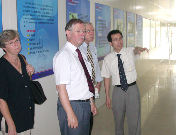會談結束后,米夏埃爾?屈內教授一行在吳宏寬的陪同下參觀了我校磁性材料研究所。