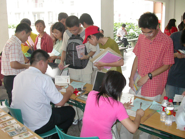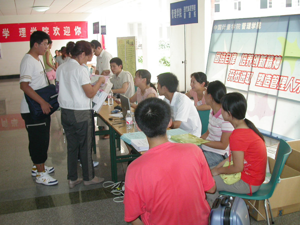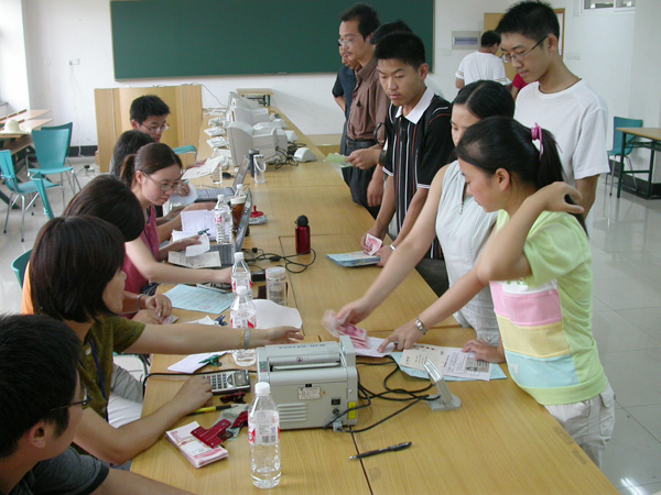 為了做好2005年迎新工作,全校上下精心組織、認真準備、周密安排,本著一切為了學生、一切為了方便學生的原則,全力以赴做好迎新工作。9月9日下午我校迎新工作序幕徐徐拉開。   9月9日上午,根據學校安排迎新時間為9月10日0:00至9月11日24:00。為了解決提前報到的新生住宿問題,9月9日14:45各接待、設攤單位人員已經全部就位,15:00整套迎新工作系統開始運行。   這是本站記者從迎新現場發回的圖片報道。