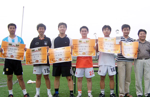 足球運動在我校有深厚的群眾基礎,我校教職工足球隊多次參加杭州市“西湖”杯足球賽并獲得好成績。本次比賽共有10支隊伍報名參賽。在27場比賽中,各支隊伍敢打敢拼,在綠蔭場上展現出了良好的競技水平和比賽風貌。最后,信息工程學院1隊勇奪桂冠,機關代表隊屈居亞軍,體育軍事部代表隊、理學院代表隊并列第三名。圖書館代表隊榮獲“最佳風尚獎”、信息工程學院代表隊龔宇平以12個進球榮獲“金靴獎”(最佳射手),理學院代表隊李世偉以高票勇奪“金球獎”(最佳球員),12名參賽球員入選“最佳陣容”。