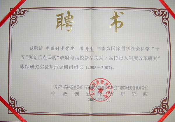 5月31日至6月2日,國家哲學社會科學“十五”規劃重點課題高級研討會在北京召開,來自全國40余所高校的代表參加了會議。我校高教研究所所長李丹青老師赴京參加了此次會議。教育部教育發展研究中心專家委員會副主任、北京大學蔡克勇教授為與會代表作了題為《轉軌時期大學經費投入研究的幾個問題》和《申報跟蹤研究課題要求及方式方法》的報告,教育部教育發展研究中心高教室主任馬陸亭作了《高等教育發展與改革》的報告。會議對于申報跟蹤研究課題的項目進行了評審、立項和頒牌的工作。   經國家哲學社會科學重點項目“政府與高校新型關系下高校投入制度改革研究”跟蹤研究管理辦公室批準,我校李丹青、于永明老師申報承擔的“地方性本科院校提升質量和水平的制度保障研究”獲準通過、立項(課題編號AIA010027-CEI0518),被列為國家哲學社會科學“十五”規劃重點課題“政府與高校新型關系下高校投入制度改革研究”(課題編號AIA010027)的子課題,我校被列為國家哲學社會科學“十五”規劃重點課題跟蹤研究試驗基地。李丹青老師被聘為我校跟蹤研究試驗基地調研組組長,于永明副書記被聘為我校跟蹤研究試驗基地調研組執行組長。