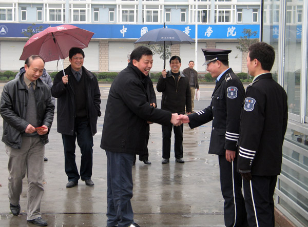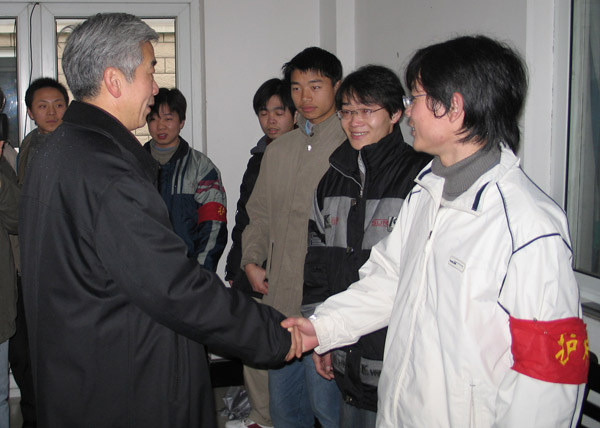 農歷大年三十,雖然天空下著小雨,但校園里卻處處洋溢著濃濃的新年喜慶。學校黨委書記姚盛德,黨委副書記徐涌金,副校長張碩年,黨校辦、宣傳部、學生處、保衛處、團委、后勤服務公司等有關部門負責人以及各二級學院領導向堅守在工作崗位的教職員工和留校過年的同學們進行了新春慰問,并送上了最衷心的新年祝福。慰問中,姚盛德書記詳細地詢問了大家在學校的生活情況,并由衷的希望大家把學校當作自己的家,在這個大家庭中度過一個歡樂祥和的春節。