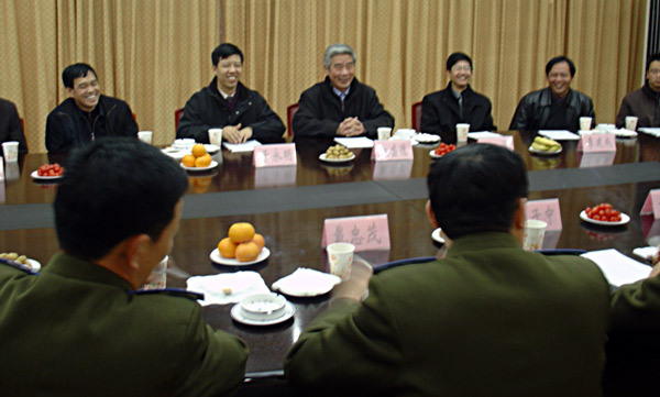 12月28日,校黨委書(shū)記姚盛德、黨委副書(shū)記于永明、副校長(zhǎng)侯宇率團(tuán)赴校軍訓(xùn)對(duì)口單位空軍28師進(jìn)行元旦、春節(jié)慰問(wèn)活動(dòng)。校學(xué)生處、團(tuán)委、體軍部等單位的有關(guān)人員參加了此次慰問(wèn)活動(dòng)。   空軍28師政委康子中等主要部隊(duì)領(lǐng)導(dǎo)在師部會(huì)議室與我校代表團(tuán)進(jìn)行了會(huì)談。姚盛德代表學(xué)校全體師生員工向空軍28師贈(zèng)送了慰問(wèn)品,并表達(dá)了對(duì)空軍28師在軍民共建中為我校做出貢獻(xiàn)的感謝之情,同時(shí)也向空軍28師全體官兵致以最熱烈的節(jié)日問(wèn)候。部隊(duì)領(lǐng)導(dǎo)也代表全師指戰(zhàn)員向?qū)W校全體師生員工致以最誠(chéng)摯的問(wèn)候。座談中,雙方領(lǐng)導(dǎo)就今后共建中的學(xué)生軍訓(xùn)和技術(shù)合作等問(wèn)題達(dá)成了意向。