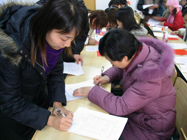 全體學生新黨員在《計量技術工程學院學生黨員責任書》上鄭重地簽下了自己的名字。
