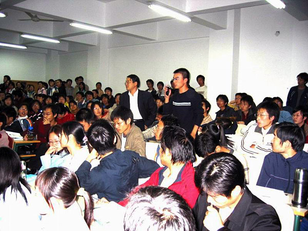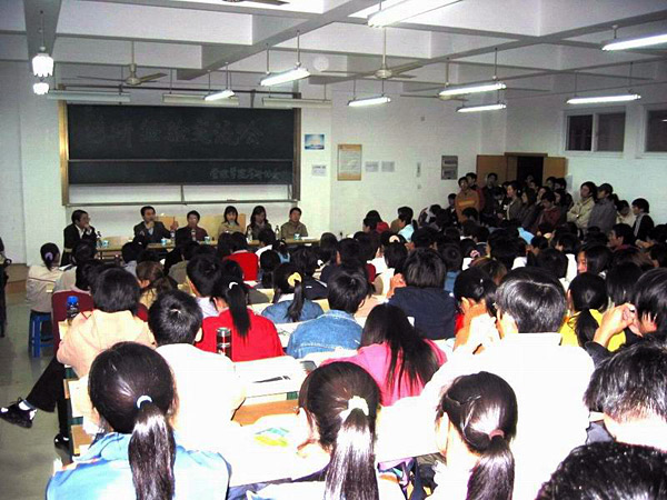 熊明華首先對考研中應(yīng)注意的問題做了全面的闡述,接著江東坡博士就選擇專業(yè)和報(bào)考學(xué)校等問題講述了自己的看法,馬會起則通過實(shí)例分析來提高同學(xué)們考研的積極性,余曉和金芳芳結(jié)合學(xué)科特點(diǎn)及就業(yè)形勢進(jìn)行了進(jìn)一步的闡述,最后季任天結(jié)合自己的考研經(jīng)歷激勵(lì)同學(xué)要在考研路上堅(jiān)持不懈,充滿信心。