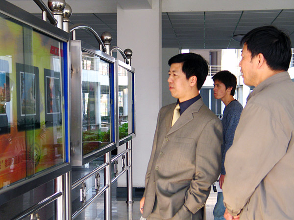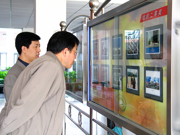 在評選的基礎(chǔ)上,校工會(huì)還于近期在環(huán)宇樓大廳對優(yōu)秀作品進(jìn)行了展出。11月23日下午,校黨委副書記于永明、副校長張碩年在校工會(huì)常務(wù)副主席朱金奎的陪同下饒有興致的參觀了攝影展。校領(lǐng)導(dǎo)對參賽選手獨(dú)具匠心,用自己的鏡頭拍攝的校園美景,展現(xiàn)的良好的校園氛圍贊嘆不已。