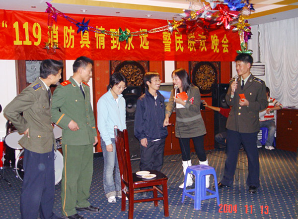 消防隊(duì)員的“消防時(shí)裝秀”拉開(kāi)了晚會(huì)的序幕。表演中,消防官兵們看似各個(gè)身著奇裝異服,但那卻是消防工作不可或缺的裝備。接下來(lái)是我校同學(xué)為消防官兵準(zhǔn)備的多個(gè)精彩表演,使整個(gè)會(huì)場(chǎng)掀起了一次又一次的小高潮。消防官兵也不甘示弱,拿出了他們的看家本領(lǐng),特別是“擒拿表演”更是讓同學(xué)們大開(kāi)眼界,既展現(xiàn)了他們英勇威武的一面,又讓大家體會(huì)到了部隊(duì)訓(xùn)練的辛苦,雷鳴般的掌聲響徹會(huì)場(chǎng)。此外,晚會(huì)中還穿插了互動(dòng)游戲,內(nèi)容新穎有趣,不僅拉近了同學(xué)們和消防官兵的距離,同時(shí)也以一種輕松的方式增長(zhǎng)了大家的消防知識(shí)。