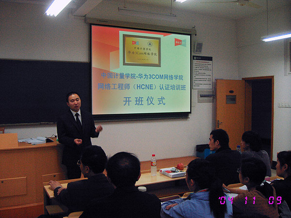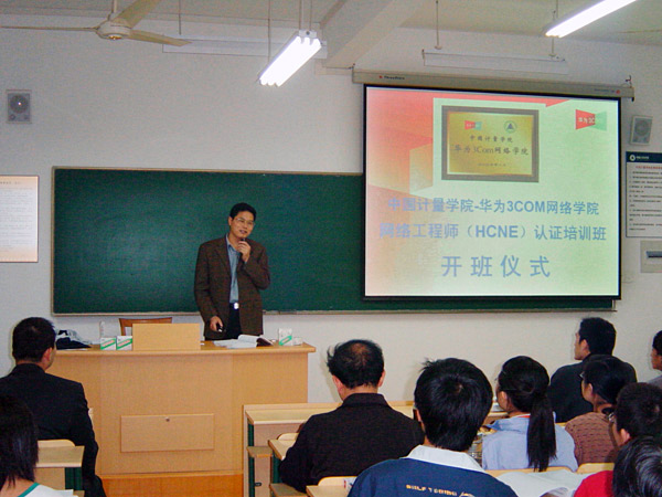 11月9日晚6:00,中國計量學(xué)院—華為3Com網(wǎng)絡(luò)學(xué)院第一期華為3Com認(rèn)證網(wǎng)絡(luò)工程師培訓(xùn)班在我校D304教室正式開班。信息工程學(xué)院院長方達(dá)偉、計算機(jī)應(yīng)用學(xué)科負(fù)責(zé)人道克剛教授參加了開班儀式,他們對華為3Com認(rèn)證網(wǎng)絡(luò)工程師培訓(xùn)班在我校首次舉辦表示祝賀,并對參加培訓(xùn)班學(xué)習(xí)的學(xué)生提出了幾點要求和希望。華為3COM網(wǎng)絡(luò)公司代表金穎經(jīng)理也出席了開班儀式。