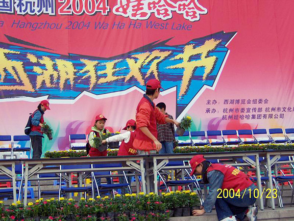 10月23日舉行的2004西湖狂歡節是今年西博會的重頭戲,為了配合西博會組委會的工作,我校青年志愿者總隊選派出50余名同學參與了狂歡節的服務工作。