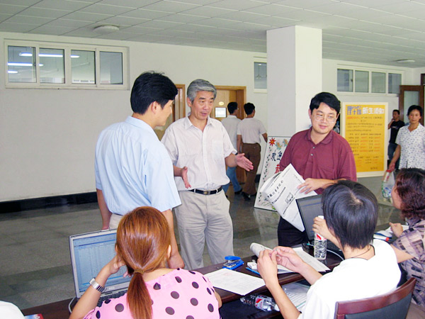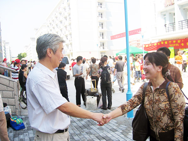 在全校各二級學院和有關職能部門通力協作,齊心協力做好迎新工作的同時,9月17日一大早,學校黨政領導深入迎新現場對在迎新工作第一線的工作人員進行慰問,并到學生生活區與新生及家長進行了溝通和交流。