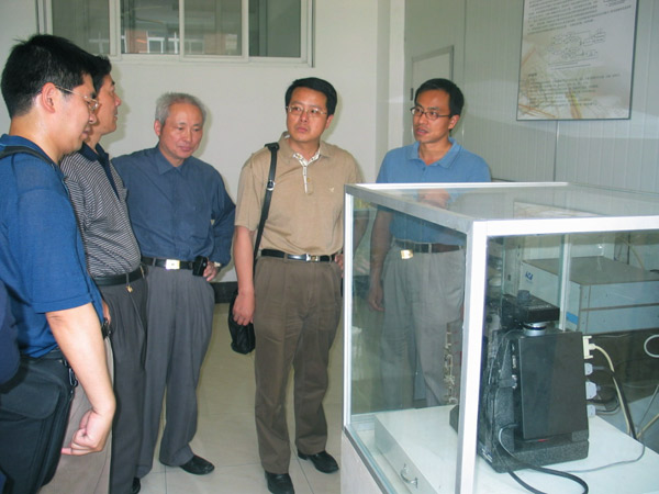 接著,馬錦躍一行在科技處處長張樹生和理學院院長裘忠平等的陪同下,參觀了我校磁性材料試驗基地,并聽取了實驗中心的發展規劃介紹。下午,馬錦躍一行還在科技處處長張樹生和葛洪良教授的陪同下到東磁有限公司進行了考察。