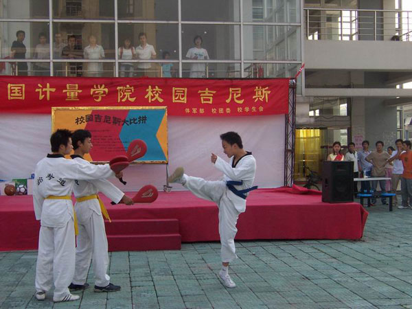 主場地前搭了舞臺,兩名主持人不時地介紹各個項目的報名和比賽情況,中間穿插了跆拳道、吉他彈唱等助興節(jié)目。場地上,各個項目報名的同學(xué)都十分踴躍,在轉(zhuǎn)呼啦圈的比賽里,十分鐘的比賽時間,參賽的六名同學(xué)伴著動感的音樂轉(zhuǎn)起呼啦圈,技術(shù)嫻熟,動作優(yōu)美,讓比賽成了一種表演。最后,林芳芳同學(xué)以十分鐘旋轉(zhuǎn)1400多圈的成績獲得了冠軍。參加俯臥撐比賽的同學(xué)一開始只有三名,當(dāng)其他兩名同學(xué)都體力不支結(jié)束比賽時,仍有一位穿紅色運(yùn)動服的同學(xué)一直堅持著,在他的精神的感染下,不少同學(xué)上臺一展身手,一些女生也自告奮勇地參加了比賽。在集體跳長繩的比賽中,同學(xué)們紛紛以班級、學(xué)生會等形式組隊上場,參賽團(tuán)隊配合默契,出色的表現(xiàn)也得到了現(xiàn)場觀眾陣陣熱烈的掌聲。