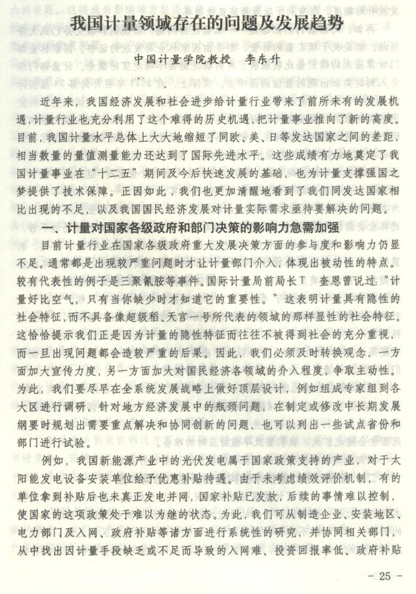 在日前出版的《質(zhì)檢內(nèi)部參考資料》(2013年第11期)的“特別關(guān)注:5.20世界計(jì)量日”欄目中,刊發(fā)了我校計(jì)量測(cè)試工程學(xué)院院長(zhǎng)李東升教授撰寫(xiě)的《我國(guó)計(jì)量領(lǐng)域存在的問(wèn)題及發(fā)展趨勢(shì)》一文。