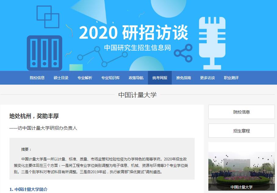 研招辦負責人:中國計量大學是一所以計量、標準、質量、市場監管和檢驗檢疫為辦學特色的高等學府。學校前身是1978年由國家計量總局創建的杭州計量學校,1985年經教育部批準升格為中國計量學院,2016年更名為中國計量大學,2017年成為省部共建大學。