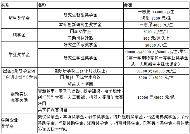 研招辦負責人:學校建有完善的研究生獎助體系,包括:國家獎學金、學業獎學金、專項獎學金和國家助學金,其中,全日制一志愿新生獎學金14000元/生,參與本碩創新計劃的本校一志愿新生獎學金4000元/生,非全日制研究生一志愿新生獎學金8000元/生,歡迎優秀考生來我校攻讀碩士研究生!