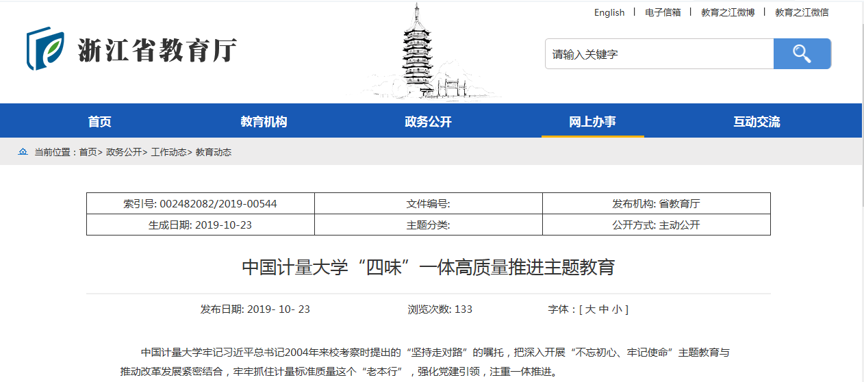 中國計量大學牢記習近平總書記2004年來校考察時提出的“堅持走對路”的囑托,把深入開展“不忘初心、牢記使命”主題教育與推動改革發展緊密結合,牢牢抓住計量標準質量這個“老本行”,強化黨建引領,注重一體推進。
