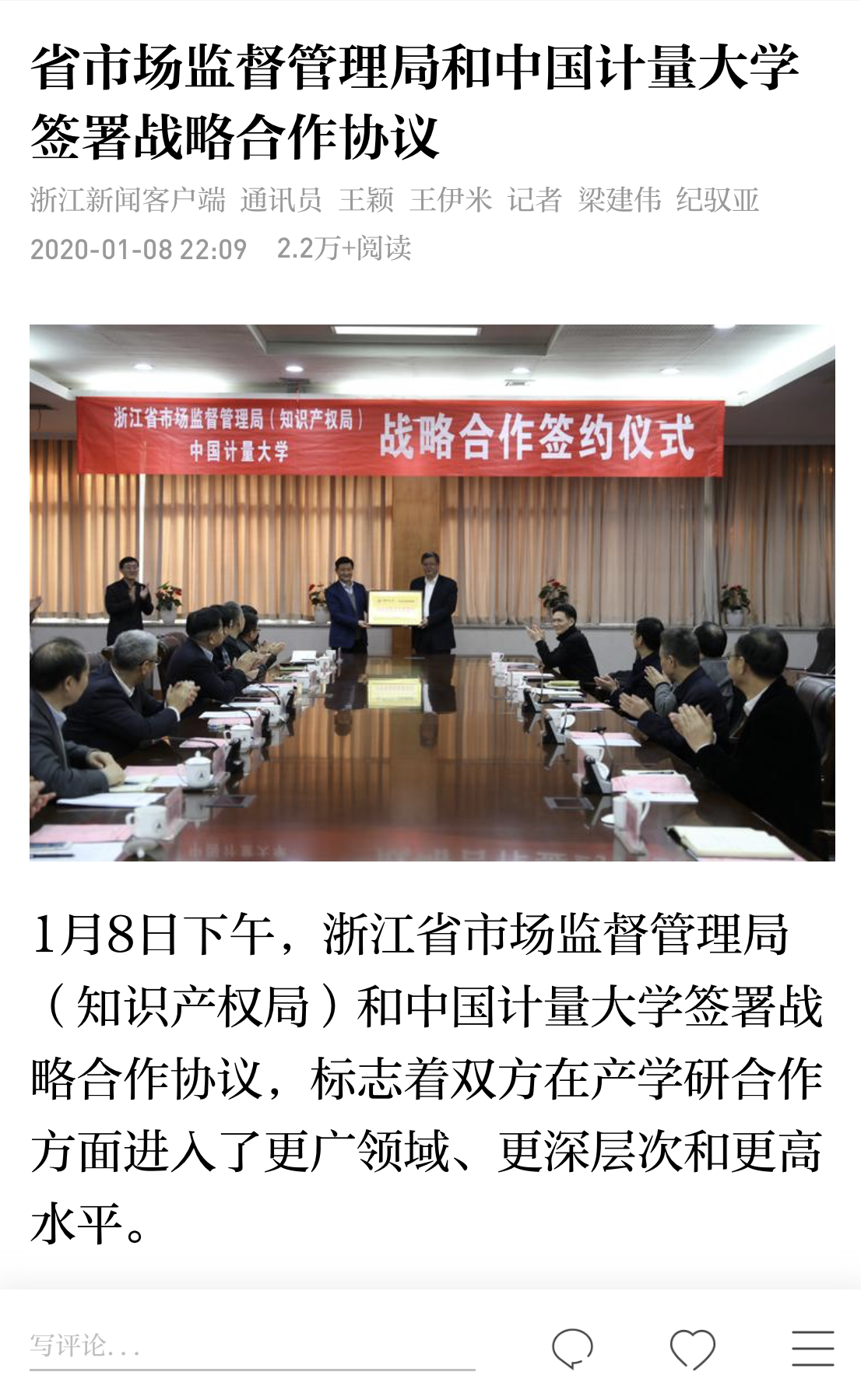 [浙江新聞客戶端]多家媒體報道我校與省市場監督管理局簽署戰略合作協議
