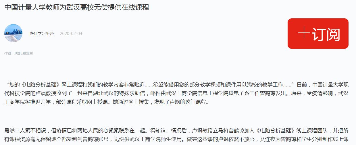 [學(xué)習(xí)強(qiáng)國]中國計量大學(xué)教師為武漢高校無償提供在線課程