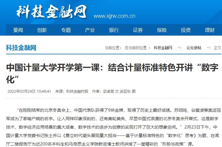 [科技金融網(wǎng)]中國計量大學開學第一課:結(jié)合計量標準特色開講“數(shù)字化”