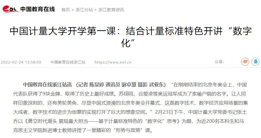 [中國教育在線]中國計量大學開學第一課:結(jié)合計量標準特色開講“數(shù)字化”