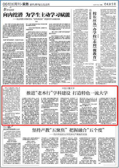 黨的二十大報告指出,教育、科技、人才是全面建設社會主義現(xiàn)代化國家的基礎性、戰(zhàn)略性支撐。高校作為人才培養(yǎng)的重要陣地,必須全面貫徹黨的教育方針,落實立德樹人根本任務。中國計量大學堅決扛起為黨育人、為國育才的歷史使命和政治擔當,深入學習貫徹黨的二十大精神,努力為培養(yǎng)社會主義接班人貢獻自己的力量。中國計量大學作為市場監(jiān)管領域的特色大學,計量、標準、質量和檢驗檢疫是學校的主要辦學特色,也是“老本行”專業(yè)。學校堅持以“老本行”為特色名校戰(zhàn)略,奮力推進浙江“兩個先行”,服務國家重大發(fā)展戰(zhàn)略和區(qū)域社會經濟發(fā)展,將“老本行”特色深深融入學科專業(yè)建設、科學研究、人才培養(yǎng)和社會服務等全過程,取得了顯著成效。