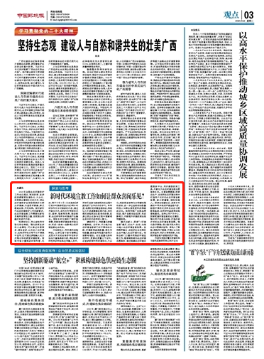 2023年3月21日《中國環(huán)境報(bào)》3版發(fā)布我校教師虞偉署名文章。
