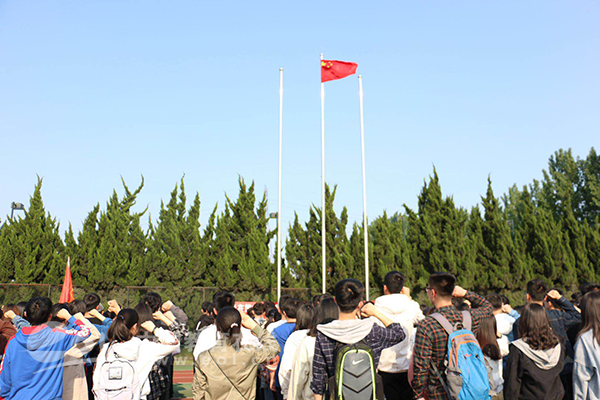 “我們將不忘初心,牢記使命,爭做愛國主義的排頭兵,讓青春在國旗下綻放。”該校國旗護衛隊隊長張寧如是說。
