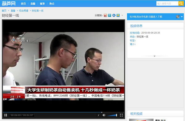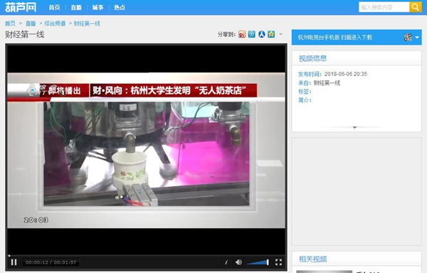 [杭州電視臺]中國計量大學學生發(fā)明智能飲品調(diào)配售賣機