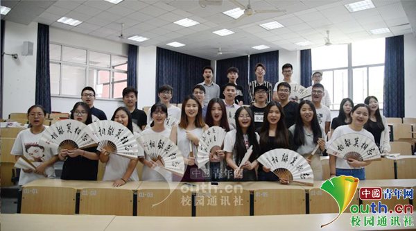 記者了解到,全系10個班級共379名2018屆畢業生,所有畢業生收到的折扇均是該系輔導員沈鈺所送。