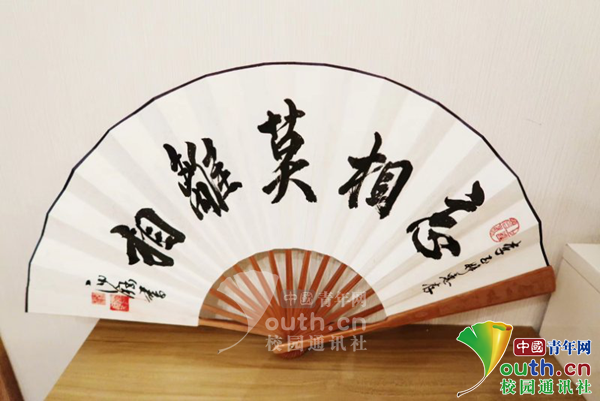 沈詩佳是現代科技學院管理系國際經濟與貿易專業大四畢業生,她告訴記者,輔導員平時的工作比較忙,負責的事情也很多,只能用空閑的時間來題字。為了這次的畢業生禮物老師很辛苦也很用心準備,經常寫到很晚。“拿到折扇的時候覺得既感動又驕傲,大學畢竟是一輩子只有一次的事情,收到這份禮物很有紀念價值,很感謝為我們盡心盡力的輔導員。”