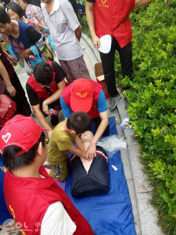 中國教育在線浙江站訊 (實習記者 趙珺 記者 陳顯婷 通訊員 金麗秋 童章波)近日,中國計量大學理學院First aid team 急救小分隊聯合江干區衛計局機關黨總支、彭埠街道社區衛生服務中心黨支部、區衛生監督所黨支部、區疾控中心黨總支四支“守護健康、醫路有我”黨員志愿服務分隊等在御道社區開展急救知識宣傳活動。