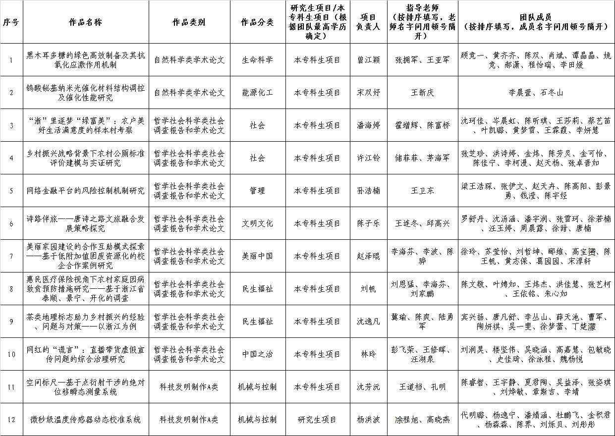 中國計量大學-浙江省“挑戰杯”競賽作品匯總表.xlsx