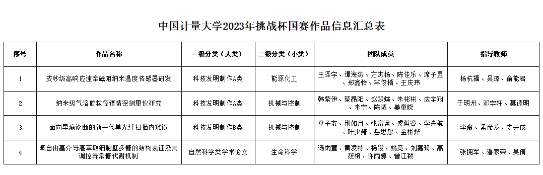 根據(jù)第十八屆“挑戰(zhàn)杯”全國(guó)大學(xué)生課外學(xué)術(shù)科技作品競(jìng)賽要求,經(jīng)評(píng)選,共推薦4件作品參加“挑戰(zhàn)杯”國(guó)賽,現(xiàn)將名單公示如下。公示時(shí)間為6月11日—6月15日。